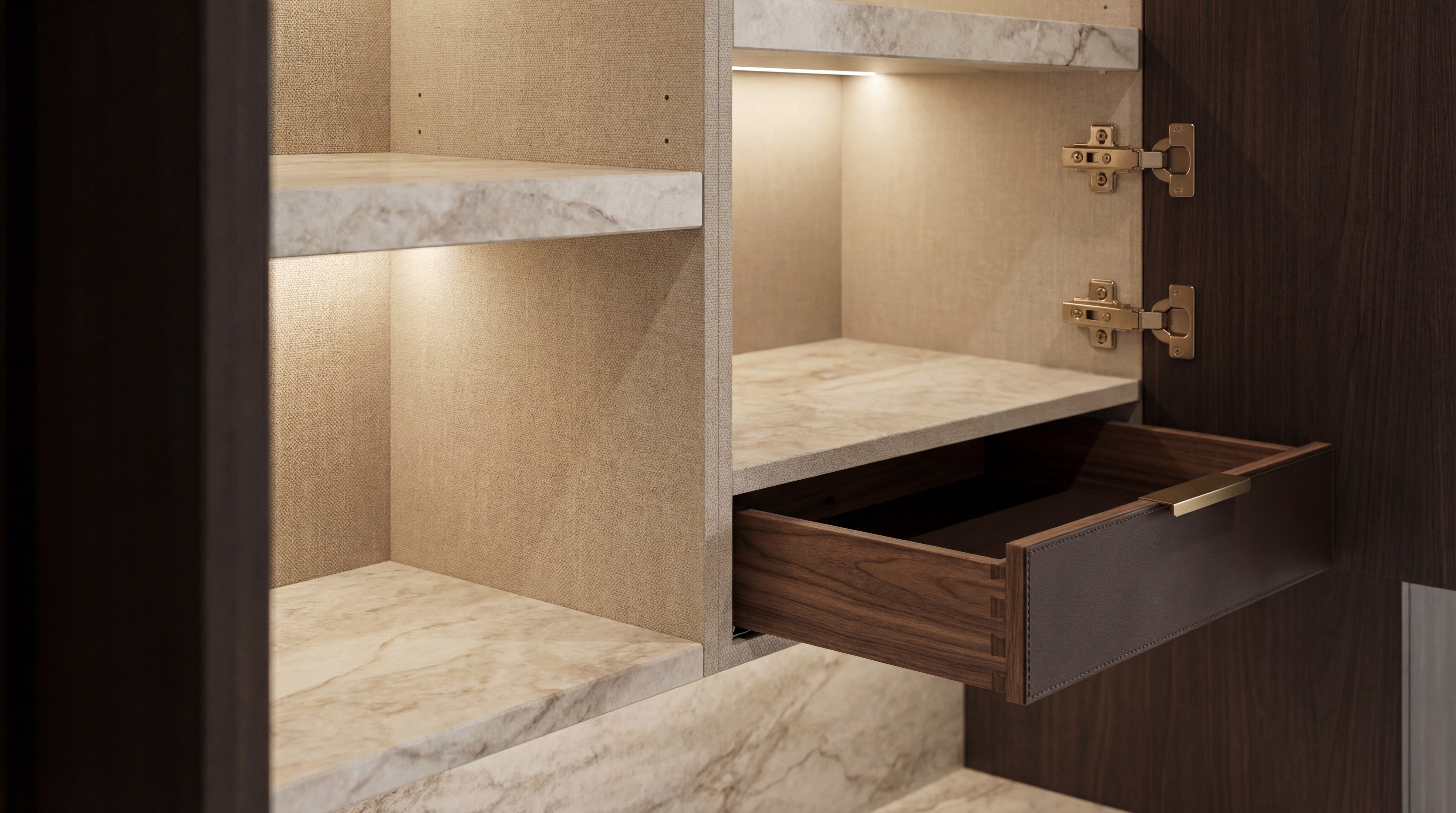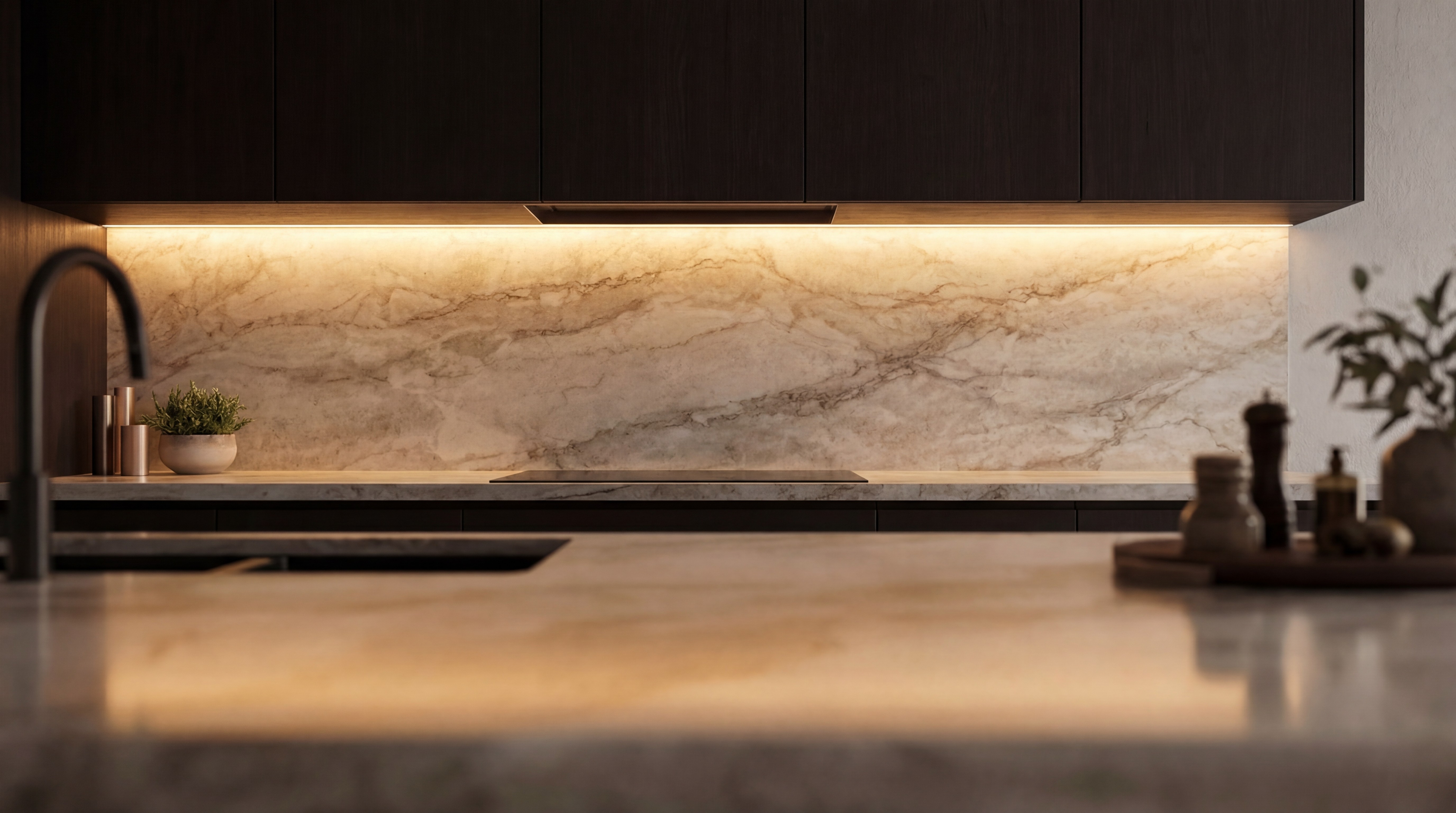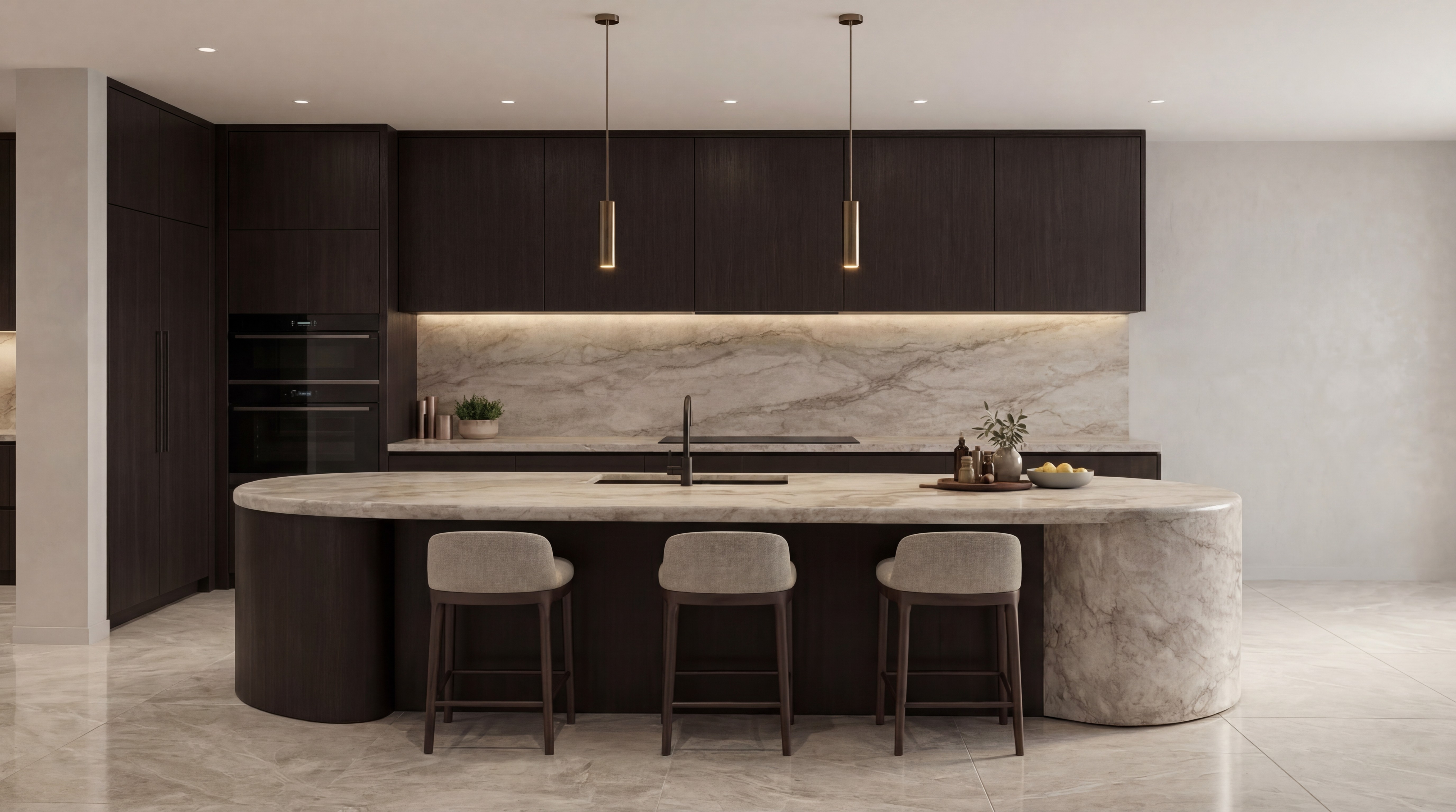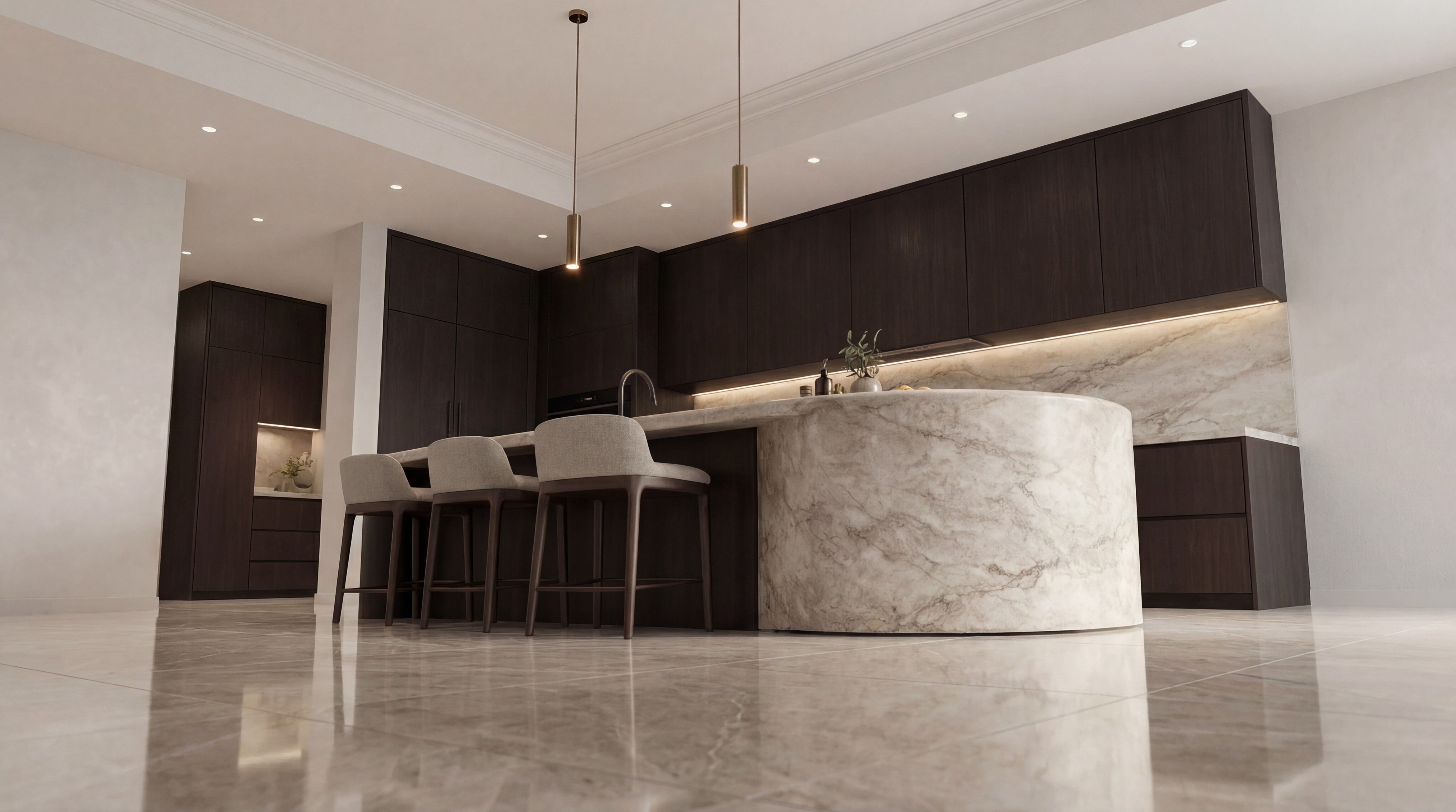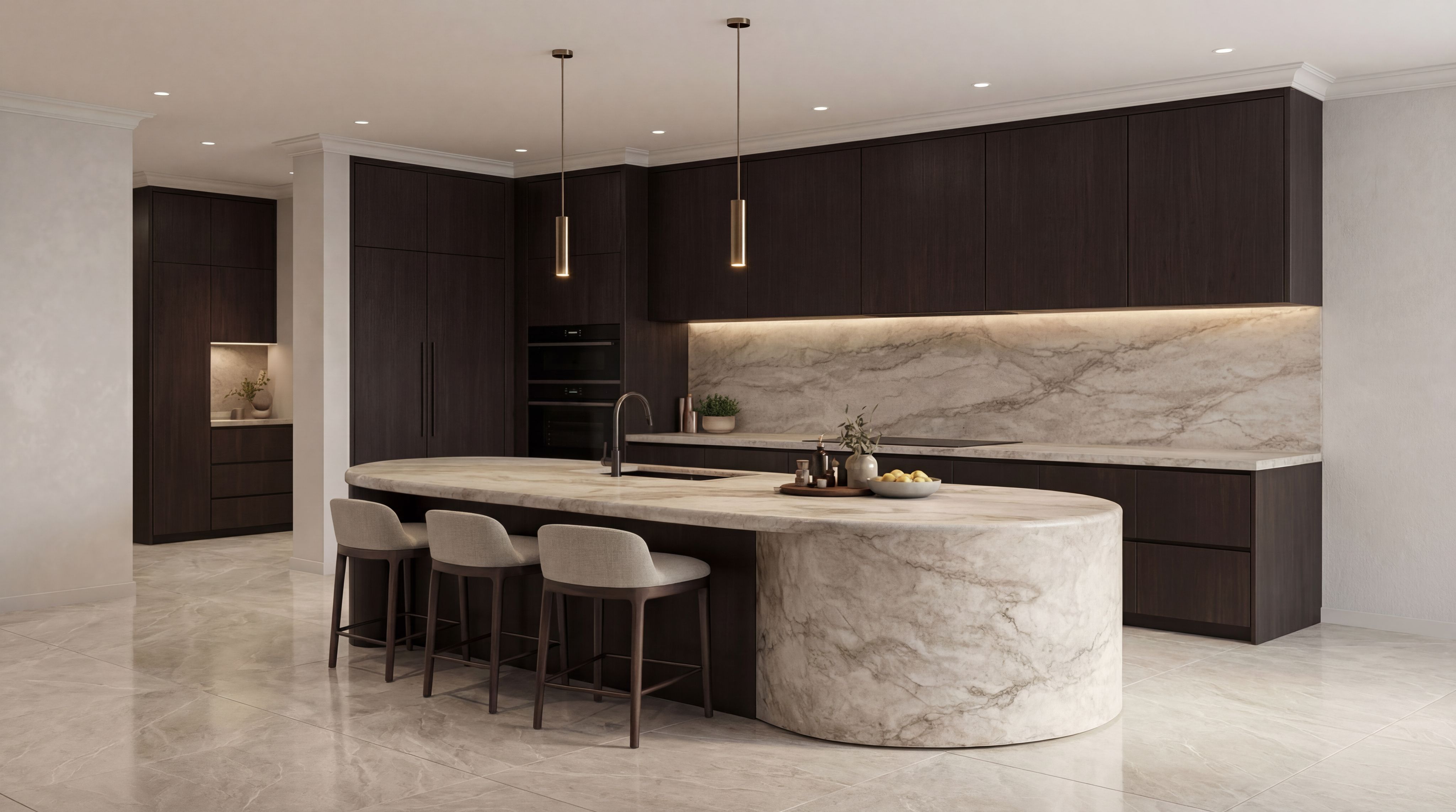 Natural stone is at the core of our design signature. From the bold veining of Calacatta marble to the understated elegance of honed limestone and textured quartzite, we work with some of the world's most sought-after stone suppliers to bring each slab's unique character to life. Every surface tells a story of nature, artistry, and precision finishing.